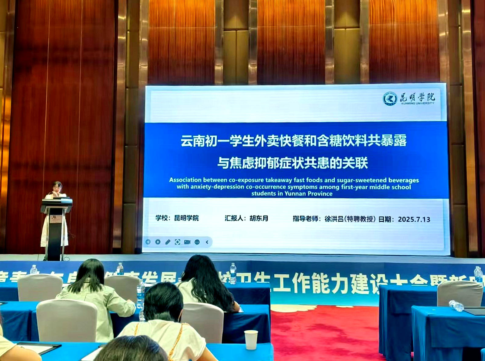 值得关注的是,徐洪吕指导的硕士研究生胡东月,其研究成果《云南初一学生外卖快餐和含糖饮料共暴露与焦虑抑郁症状共患的关联》获全国优秀论文二等奖,并受邀在本次大会作现场报告。该论文还将作为特邀报告,亮相8月18日在江苏徐州召开的“第十七届全国儿童青少年健康学术会议”。