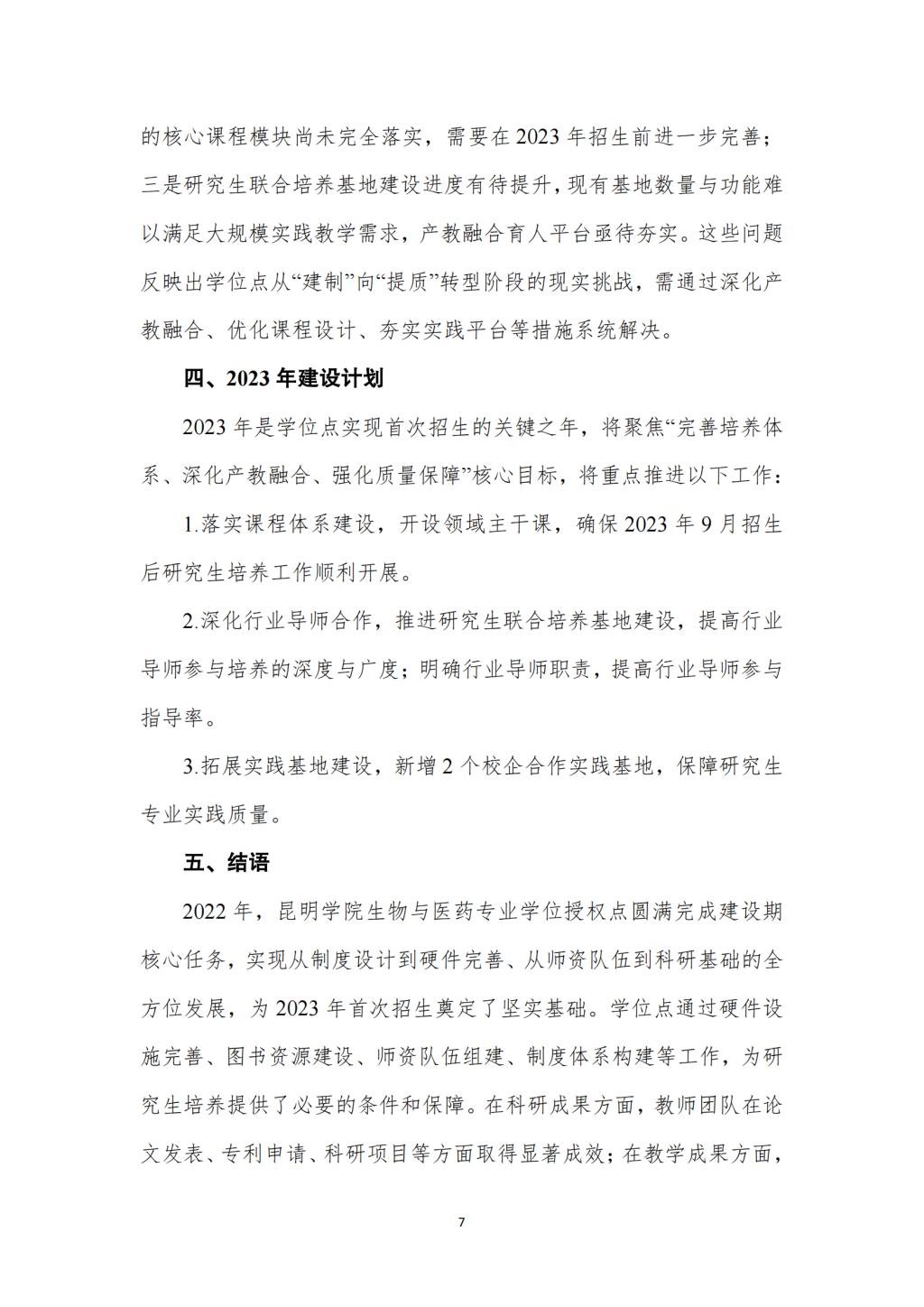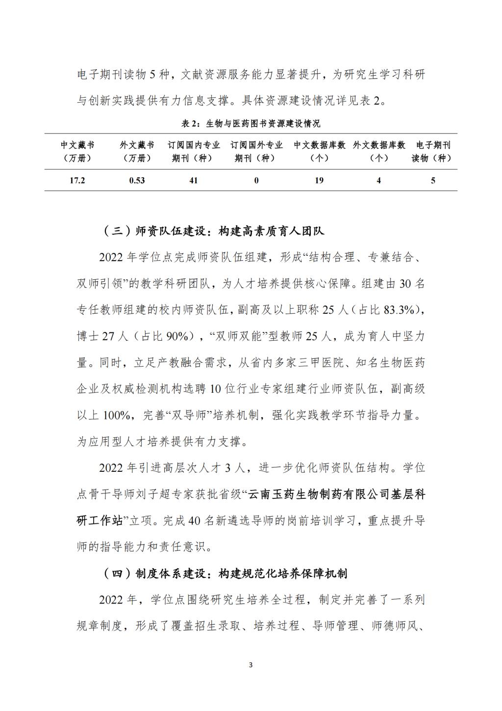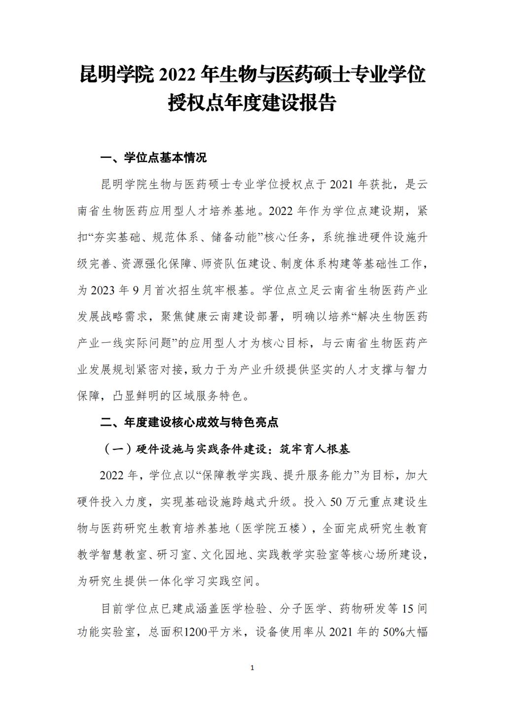 昆明学院2022年生物与医药硕士专业学位授权点年度建设报告