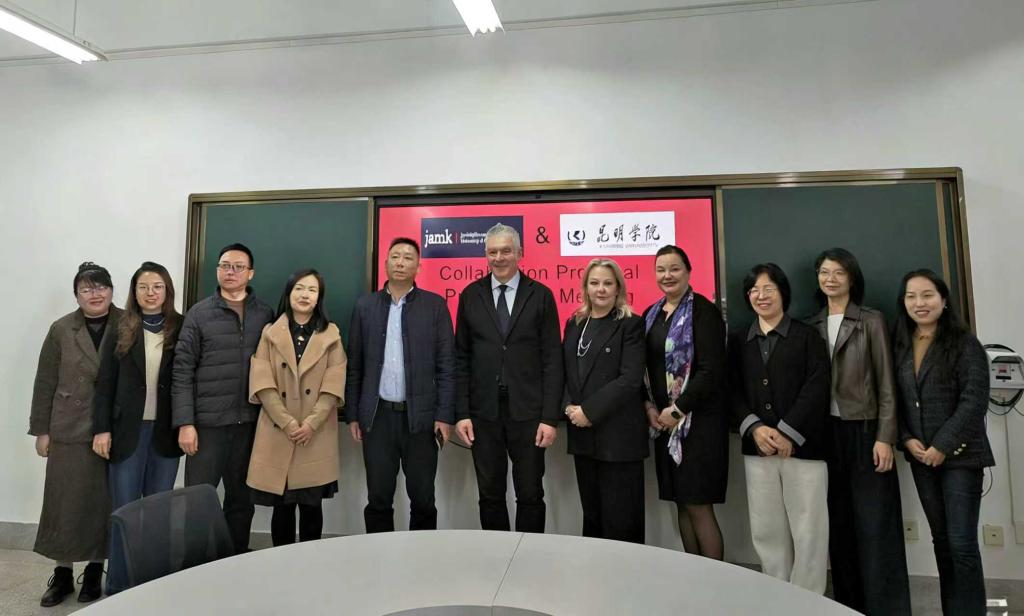 2025年12月12日,昆明学院医学院与芬兰于韦斯屈莱应用科技大学(JAMK)在昆明学院医学院召开欧盟ERAMUS+ 2026项目申报合作会议,双方围绕医疗卫生教育领域相关内容的合作展开深入探讨。