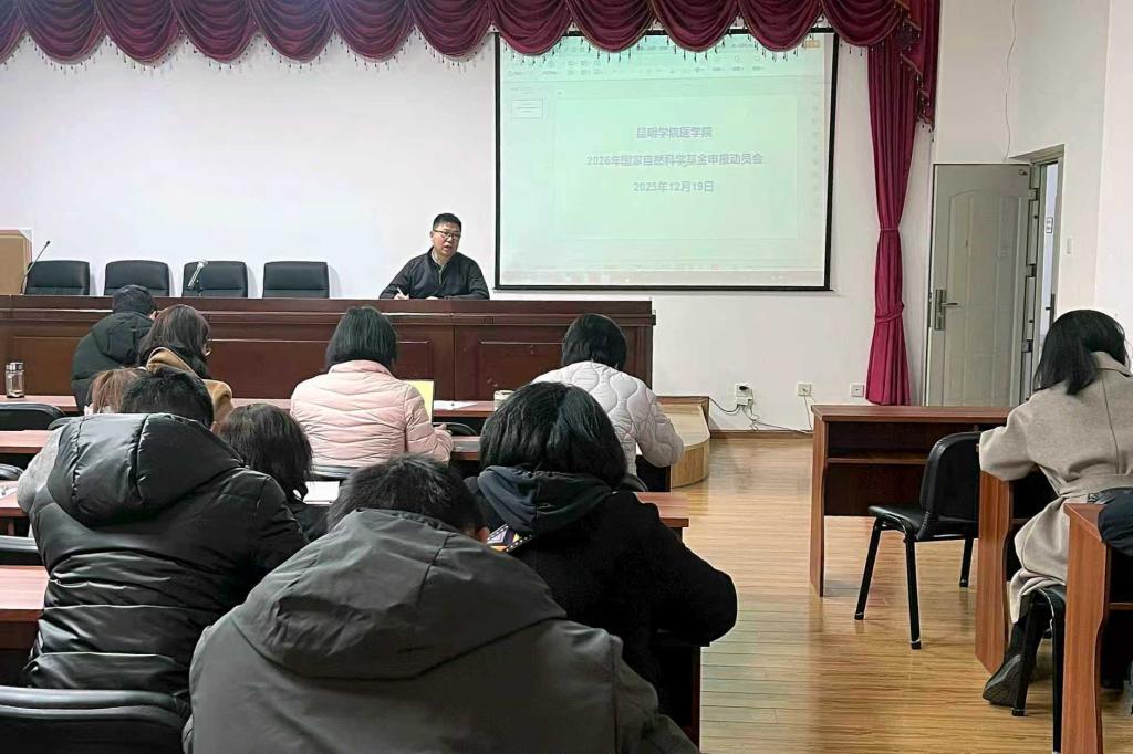 为扎实推进2026年度国家自然科学基金申报工作,凝聚科研力量、提升申报质量,12月19日,昆明学院医学院在医学楼-2103会议室召开申报动员会。医学院领导班子成员、相关部门负责人、骨干教师及青年教师代表参会,会议由何江波副院长主持。