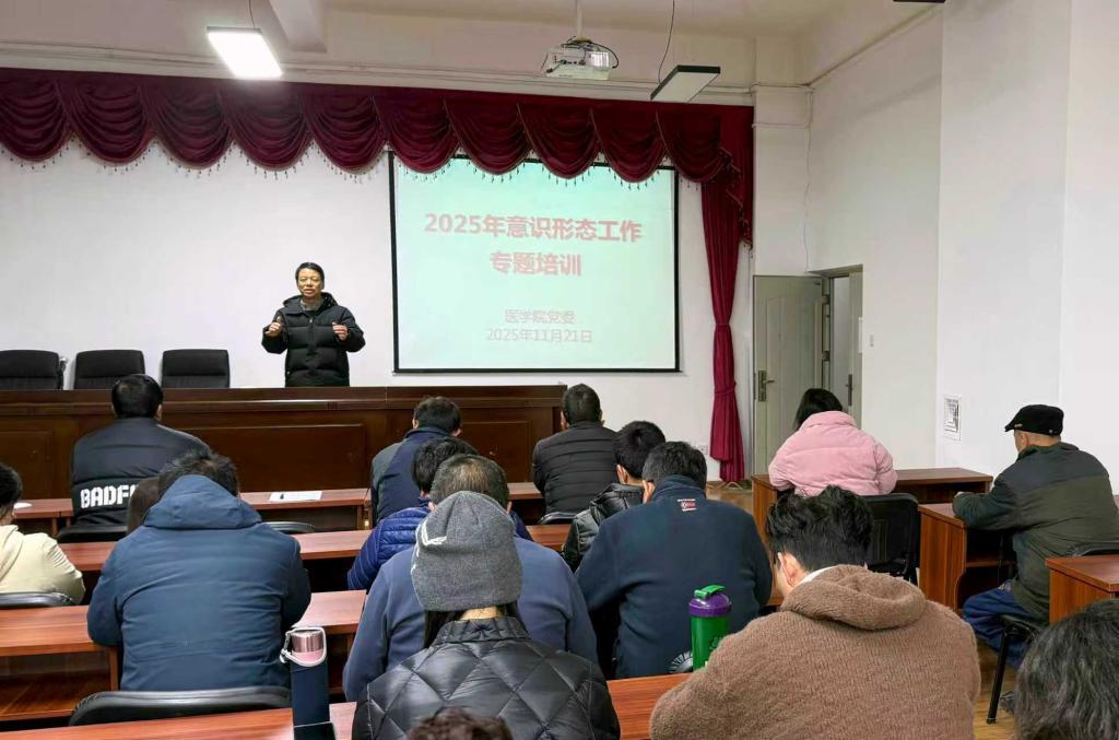 2025年 11 月 21 日下午,昆明学院医学院党委在医学楼-2103教室组织开展习近平文化思想专题学习与意识形态工作培训,全院干部职工参加。