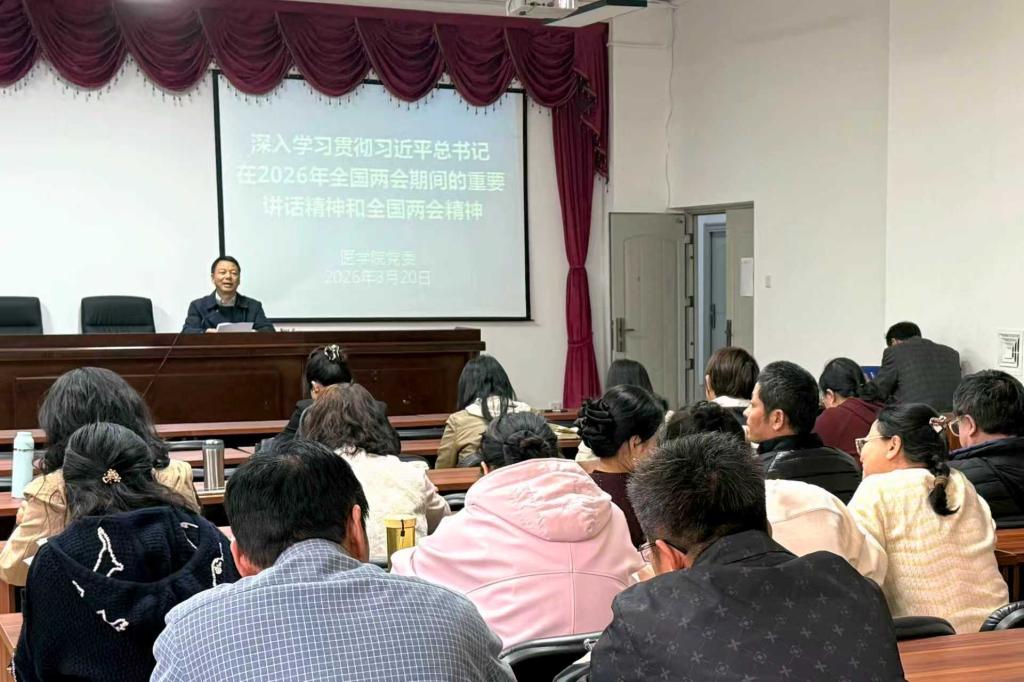 3月20日,昆明学院医学院党委利用周五政治学习时段,组织全体干部职工召开专题学习会,深入学习贯彻习近平总书记在2026年全国两会期间的重要讲话精神及2026年全国两会精神,会议由学院党委书记张培宏主持并作精神传达。