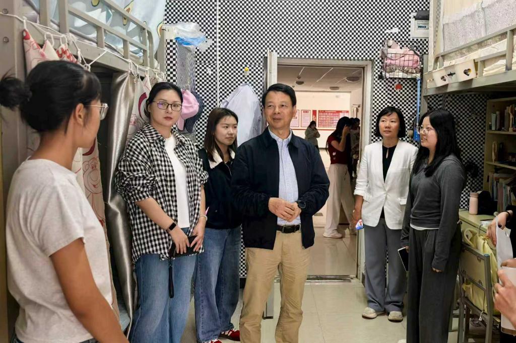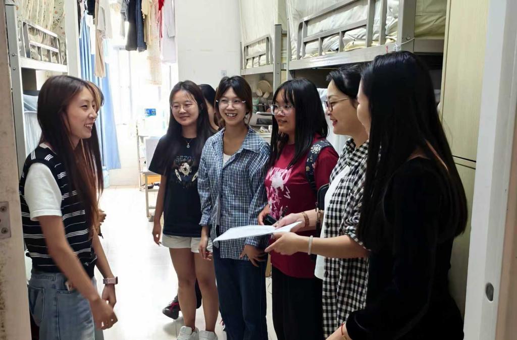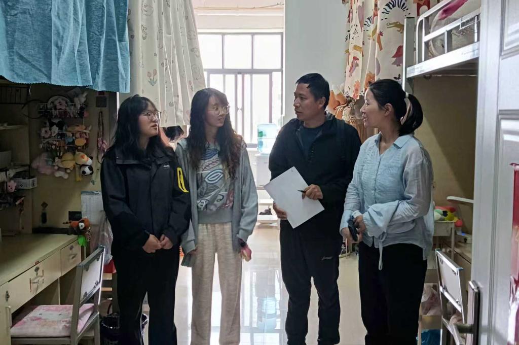 此次行动由学院党委书记张培宏、副书记李凯佳带队,采取分组走访形式深入学生宿舍。走访过程中,张培宏书记与同学们亲切交流,详细询问学习生活状况及假期安排,特别关注返家、留校学生的实际困难,并反复叮嘱返家或外出旅游途中注意交通安全,提前祝同学们节日快乐。
