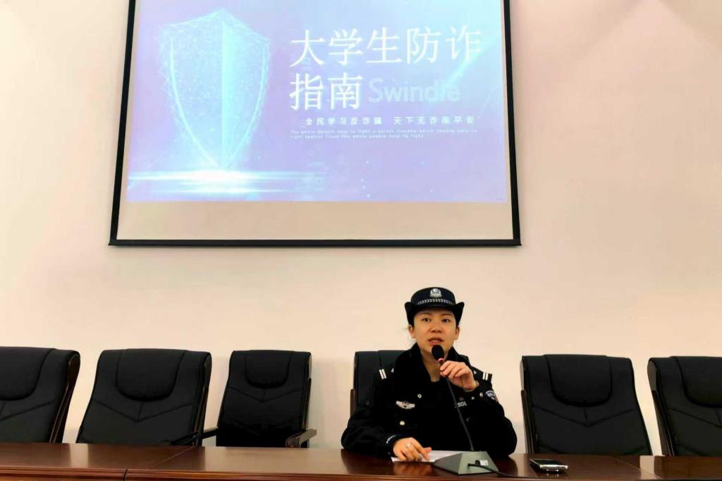 讲座特邀昌宏路派出所戴警官主讲。戴警官结合近期高校频发的电信网络诈骗案件,采用视频、图文等形式,详细拆解了“刷单返利”“虚假贷款”“冒充客服退款”等常见诈骗手段,精准剖析诈骗套路。同时,他向同学们传授了实用的反诈技巧,着重强调“陌生链接不点击、陌生来电不轻信、个人信息不泄露、转账汇款多核实”的“三不一多”原则。